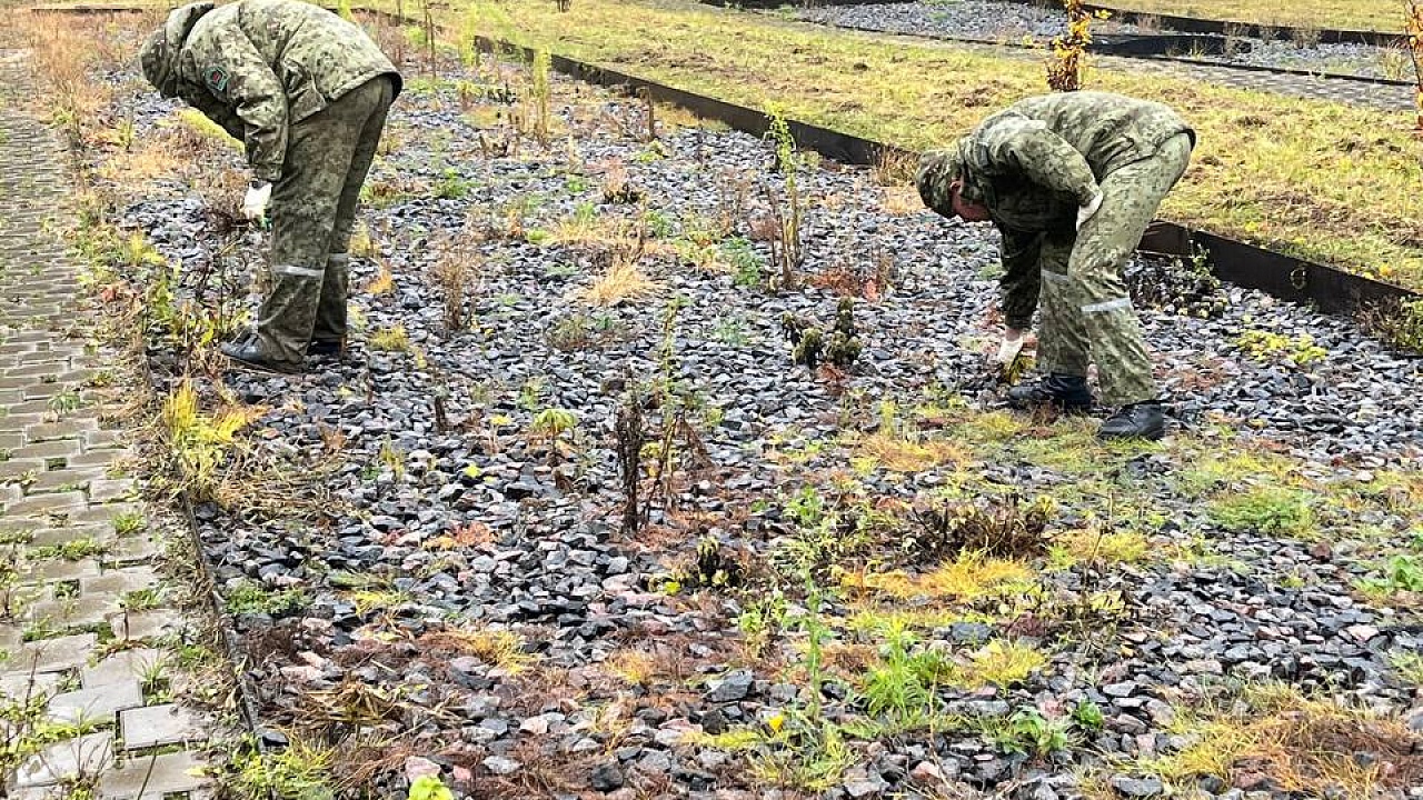 Параллельно с работами на мемориале, военнослужащие наводили порядок на территории воинской части и прилегающих территориях, административных зданиях Государственного пограничного комитета и служебных кабинетах. Эта часть субботника была направлена на создание комфортных условий для несения службы военнослужащими.