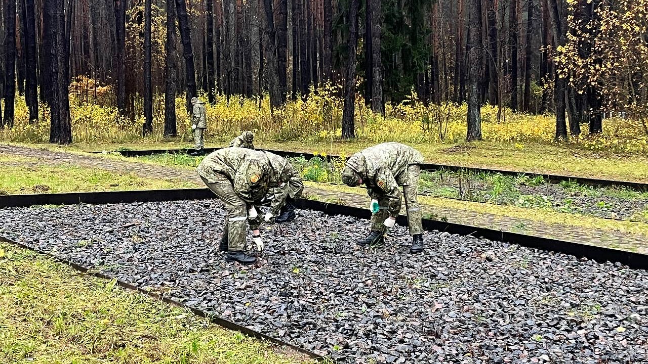 В рамках республиканского субботника работы в Группе связи и обеспечения велись на двух ключевых площадках. Основные усилия были сосредоточены на благоустройстве крупнейшего в Беларуси места памяти жертв нацизма - мемориальный комплекс «Тростенец». Совместными усилиями администрации Заводского района г.Минска, пограничников и других служб и ведомств была проведена тщательная уборка территории от листвы и мусора, выметены пешеходные дорожки, приведены в порядок газоны и цветочные клумбы. Каждый участник субботника понимал особую значимость этого места – здесь необходимо поддерживать абсолютную чистоту и достойный вид как знак уважения к десяткам тысяч безвинно погибших.