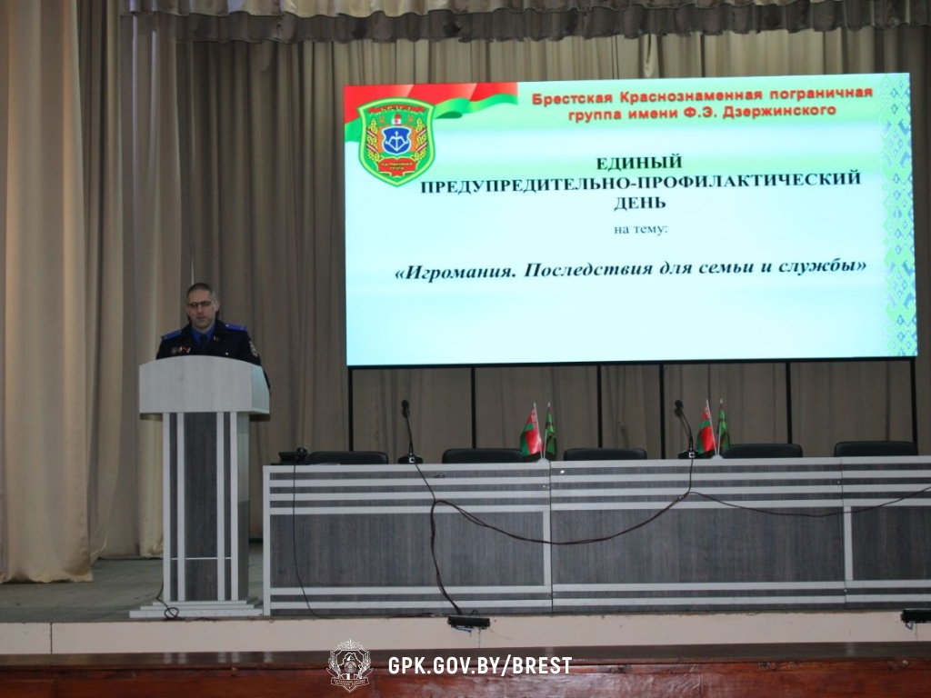 Перед собравшимися выступил заместитель начальника Брестской пограничной группы полковник Андрей Ковалевич. Он довел план проведения Единого предупредительно-профилактического дня и обозначил актуальность проблемы игровой зависимости в современном обществе, подчеркнув важность личной ответственности каждого военнослужащего за свое поведение.