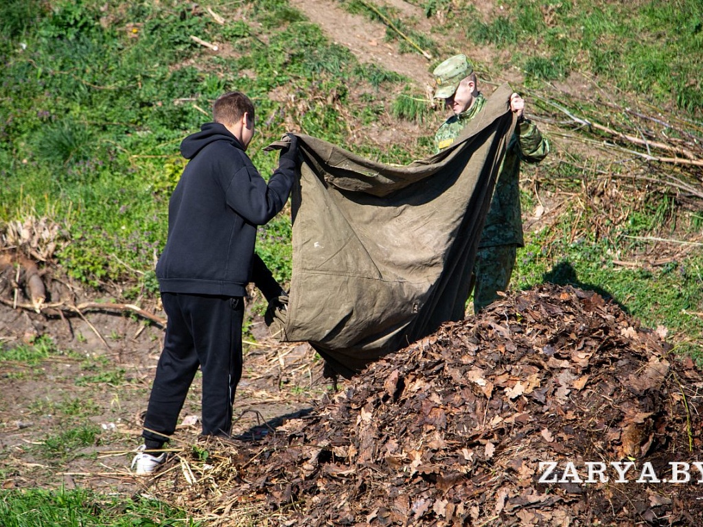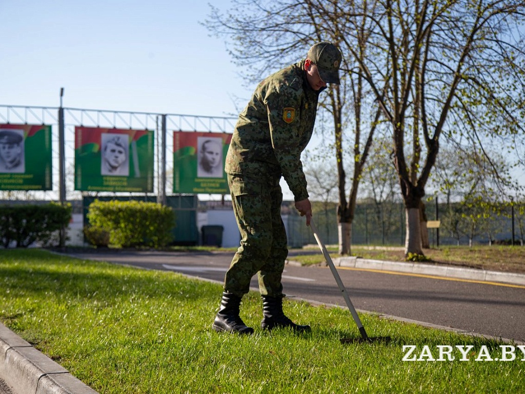 Военнослужащие, гражданский персонал, а также члены их семей убирали территории на мемориалах, воинских захоронениях и прилегающих участках. Например, потрудились у памятника советским пограничникам у Северных ворот Брестской крепости-героя и у мемориального комплекса «Стражам границ» в Городском саду.