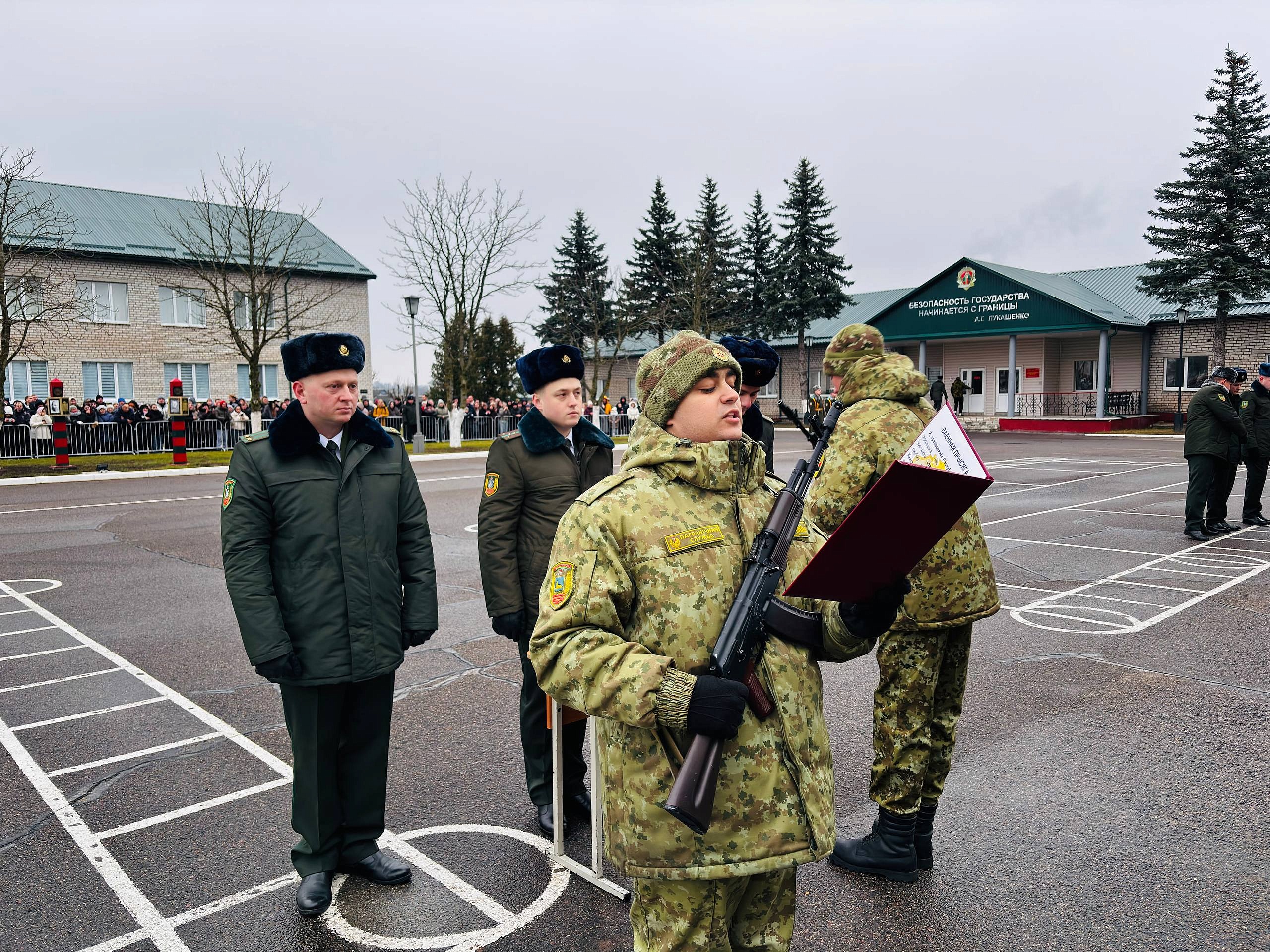 В условиях беспрецедентного внешнего давления и угроз у границ нашей страны, сегодняшний ритуал приобретает особую значимость, отметил начальник управления подготовки Государственного пограничного комитета Республики Беларусь полковник Александр Валерьевич Ким. В своем выступлении он также отметил, что не каждому дано ходить по последним метрам нашего государства.