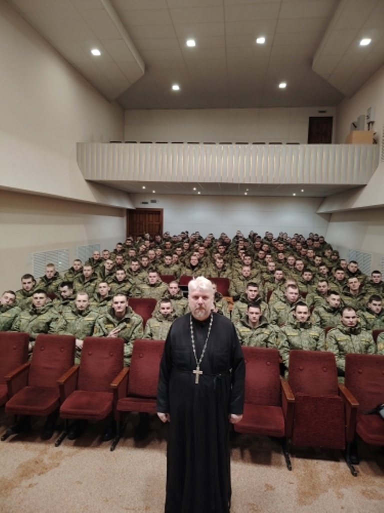 Помимо офицеров управления, а также прокурора района перед военнослужащими выступил иерей Свято-Покровского храма отец Павел.