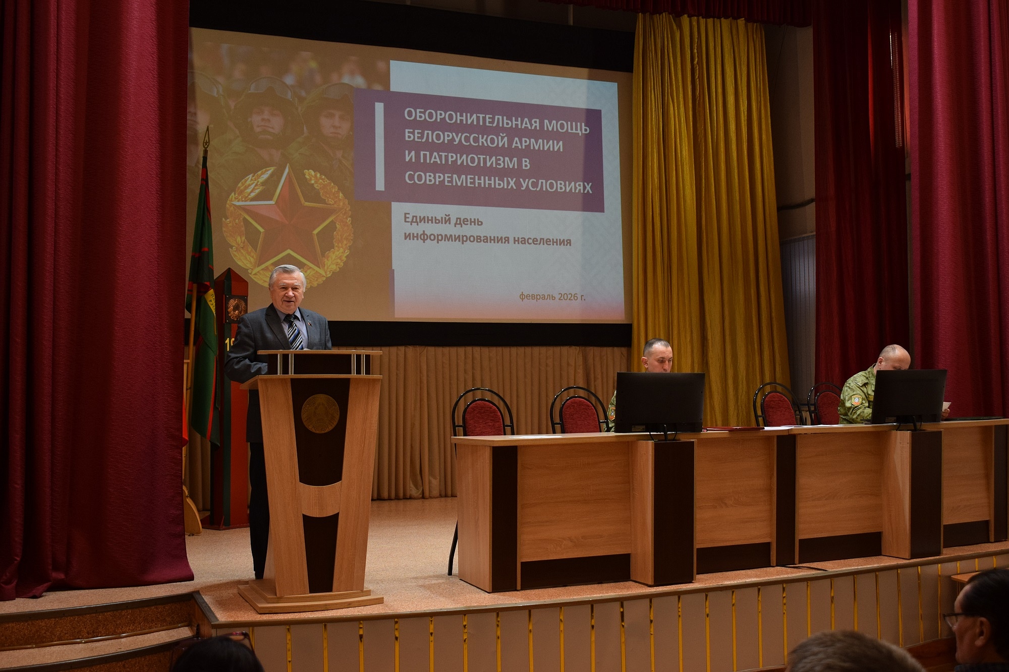 В рамках единого дня информирования, выступил председатель Дзержинского районного Совета ветеранов Виктор Николаевич Феоктистов. Его доклад был посвящен актуальной теме – обороноспособности белорусской армии и роли патриотизма в современных условиях. Участники встречи обсудили, как гражданская ответственность и любовь к Родине сегодня становятся основной для защиты суверенитета страны.