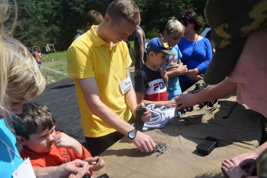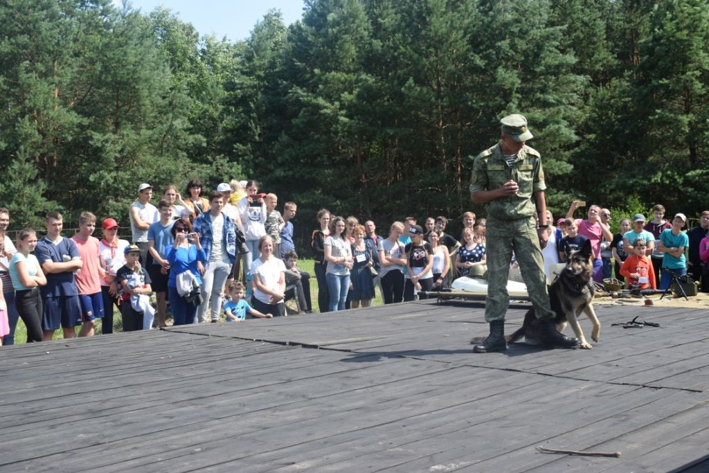 Ребята с большим интересом наблюдали за выступлением сержанта Владимира Янченко со служебной собакой Гроза, которые с первых минут показали исключительную степень взаимодействия и взаимопонимания, приняли участие в соревновании по сборке и разборке оружия, спасению раненных. Также пограничники продемонстрировали современные образцы оружия, специальных средств и ролики о пограничной службе.