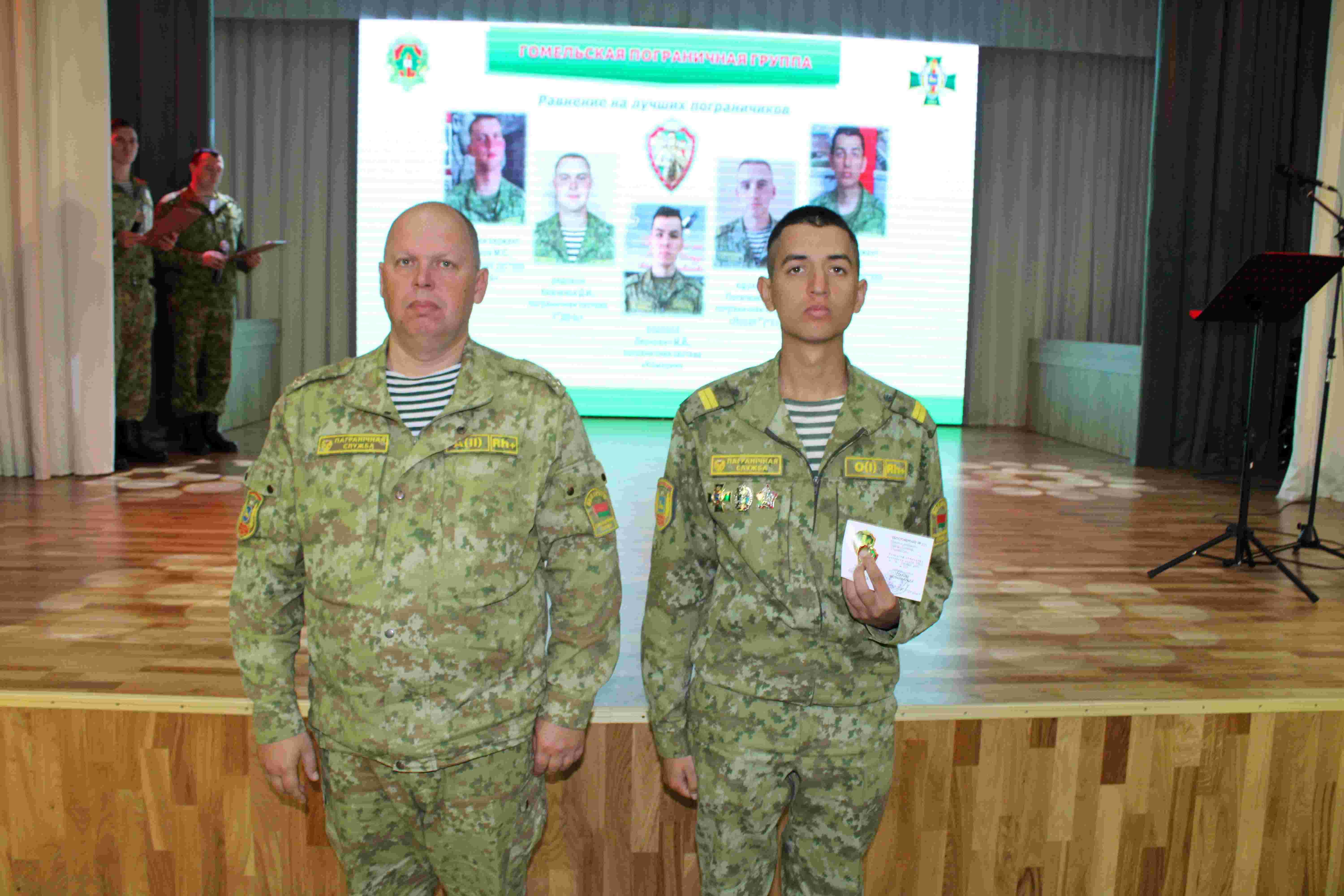 Украшением торжественной части стало выступление военного оркестра Гомельской пограничной группы. Музыкальные номера в исполнении солистов оркестра Дмитрия Лозбенева, Ольги Шинкаревой и Егора Козлова создали неповторимую атмосферу в зале.