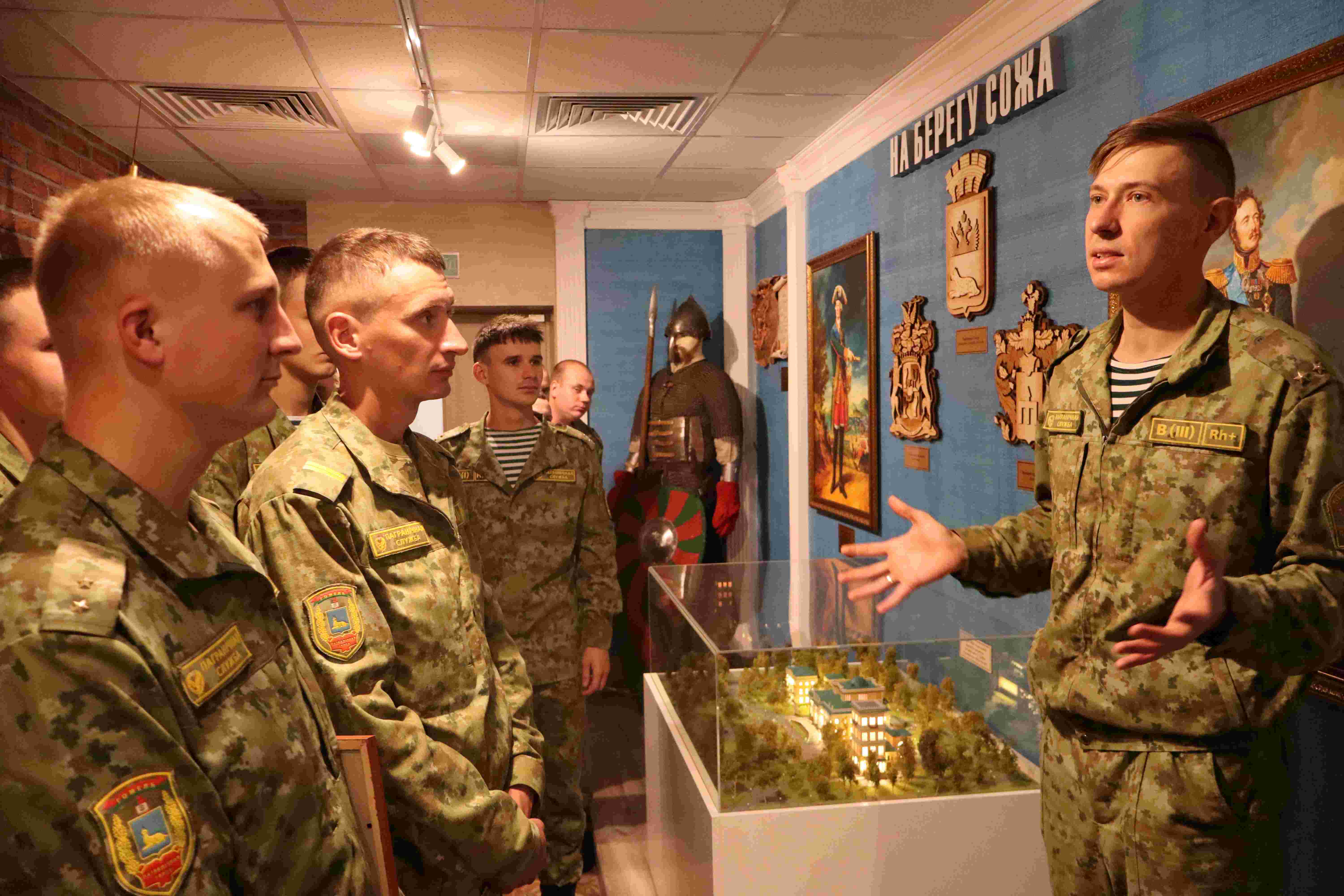 Культурно-досуговая программа продолжилась ознакомлением с историей пограничной службы на Гомельской земле в комнате истории воинской части. Прикосновение к реликвиям и знакомство с боевым путем предшественников служат мощным стимулом для верного служения Родине.