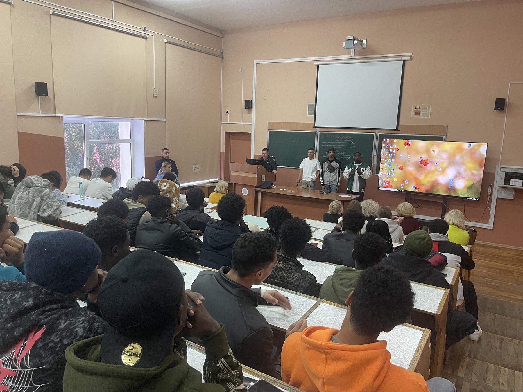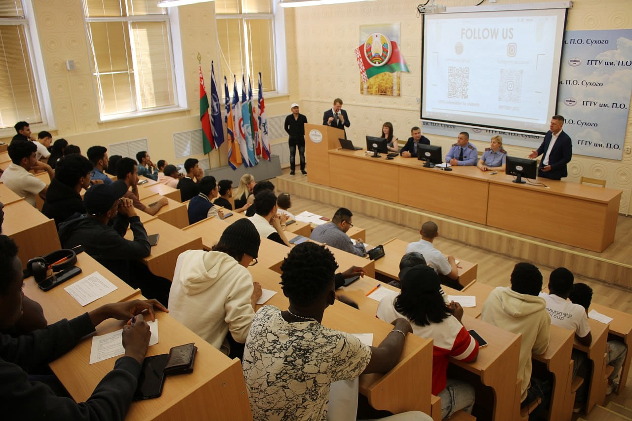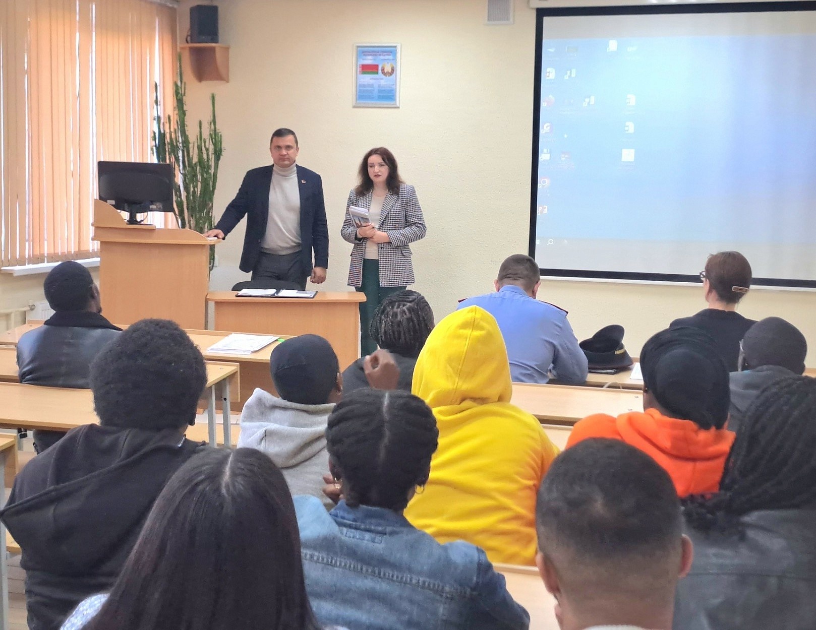 В рамках правового просвещения иностранных граждан военнослужащие Гомельской пограничной группы провели лекции для иностранных студентов, обучающихся в высших учебных заведениях Гомеля, на тему: «Недопущение нарушений законодательства Республики Беларусь о государственной границе».