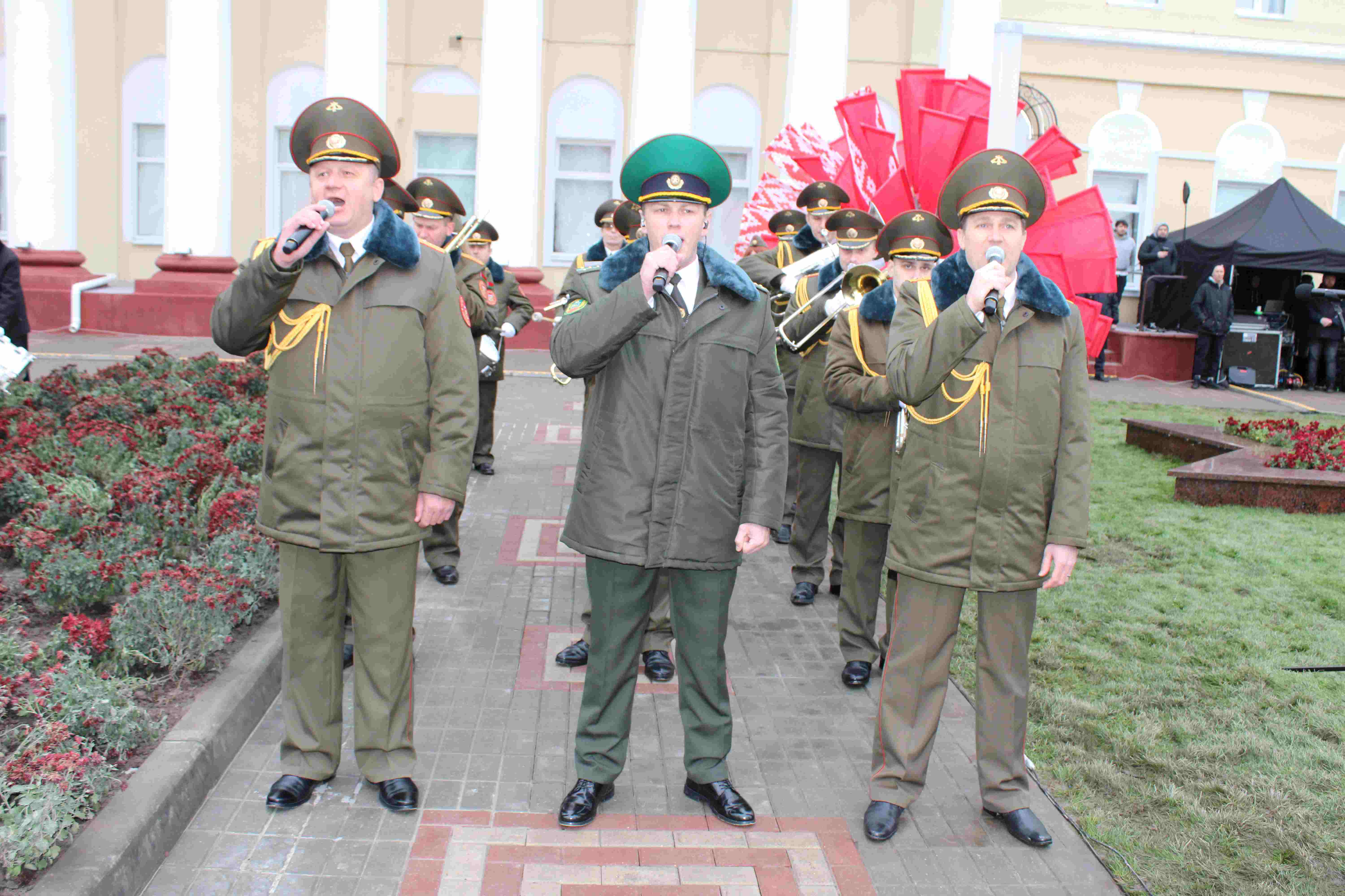 Затем гомельские пограничники приняли участие в военном параде и открытии памятника маршалу Советского Союза Константину Рокоссовскому на площади Восстания, в честь 82-й годовщины освобождения Гомеля.