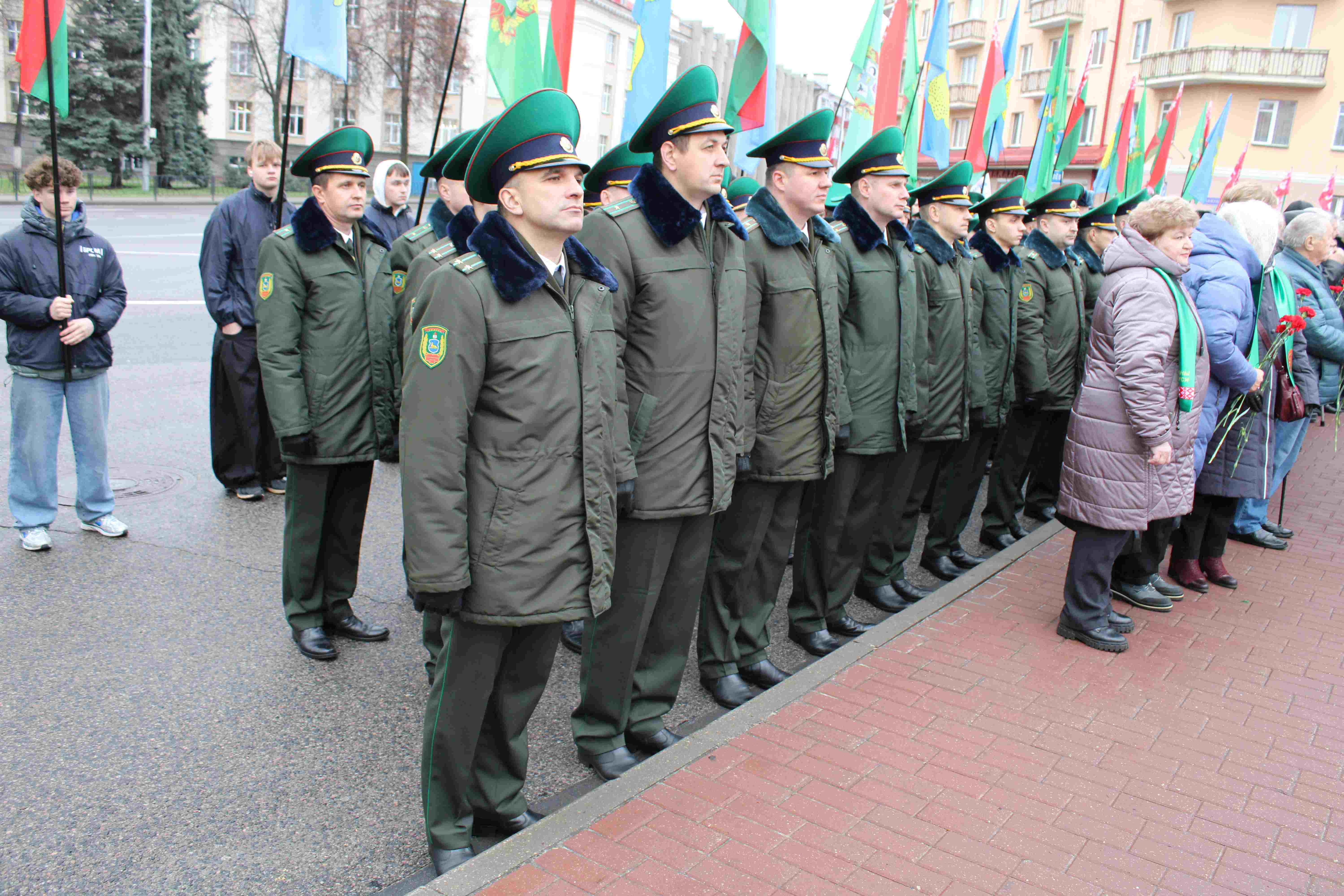 Офицеры-пограничники стали в едином строю с представителями других силовых ведомств и представителей трудовых коллективов, общественных организаций, руководства города и области, гостей из Российской Федерации, чтобы отдать дань памяти павшим и выразить признательность за мирное небо над головой, подаренное нам поколением Победителей.