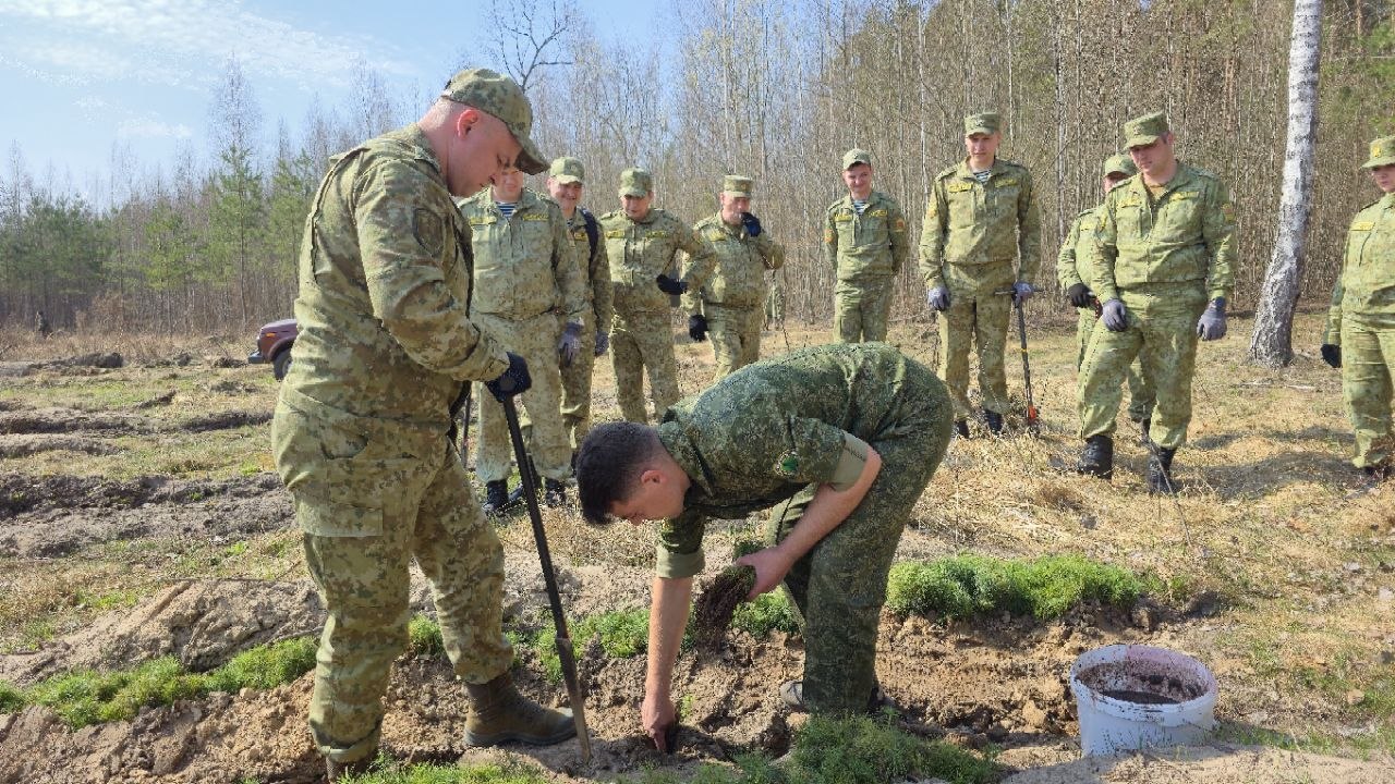 К работе военнослужащие приступили после прохождения инструктажа по правилам безопасности. После этого, сотрудники лесничества напомнили порядок высадки саженцев при помощи меча Колесова.