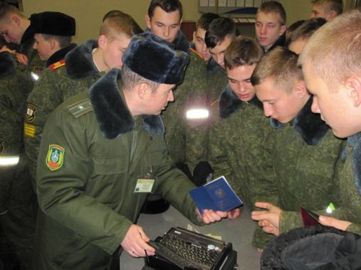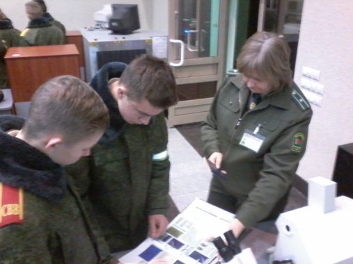 «И что, здесь собраны все-все паспорта мира ?» - любопытствует один из суворовцев. «Да, все», - улыбаясь, отвечает майор Наталья Молоткова, начальник смены отделения пограничного контроля «Гродно-1».