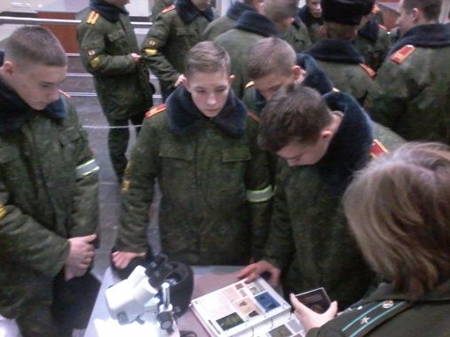 С огромным интересом слушали ребята, как происходит оформление граждан, какие приборы применяются для проверки паспортов. Многие из мальчишек самостоятельно проверили предложенные пограничниками паспорта - с помощью технических средств пограничного контроля определили, действительный ли это паспорт, или в нем имеются признаки подделки. С неподдельным интересом суворовцы разглядывали прибор «Регула-3002», предназначенный для дистанционного досмотра транспортных средств.