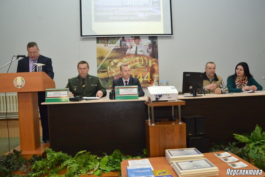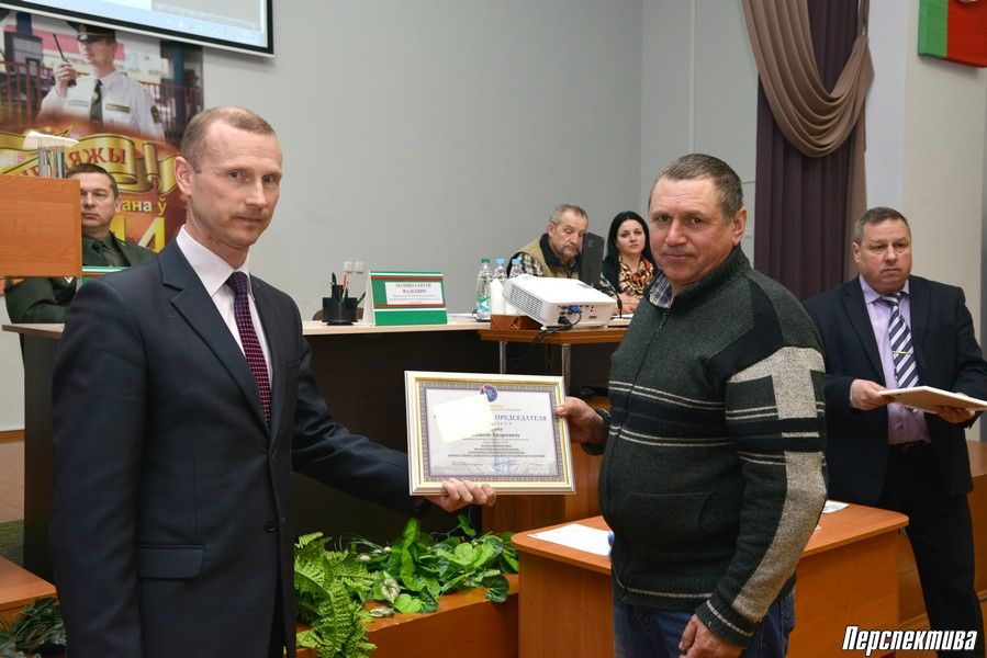В конце отчетного собрания группа лучших работников отряда, в их числе электрики, водители, повара, была награждена Почетными грамотами, грамотами и Благодарственными письмами Республиканского профсоюза работников государственных и других учреждений, а также областного исполнительного комитета и Гродненского погранотряда. Нагрудным знаком «100 гадоў на варце Дзяржаўнай граніцы» был награжден Сергей Холяво.
