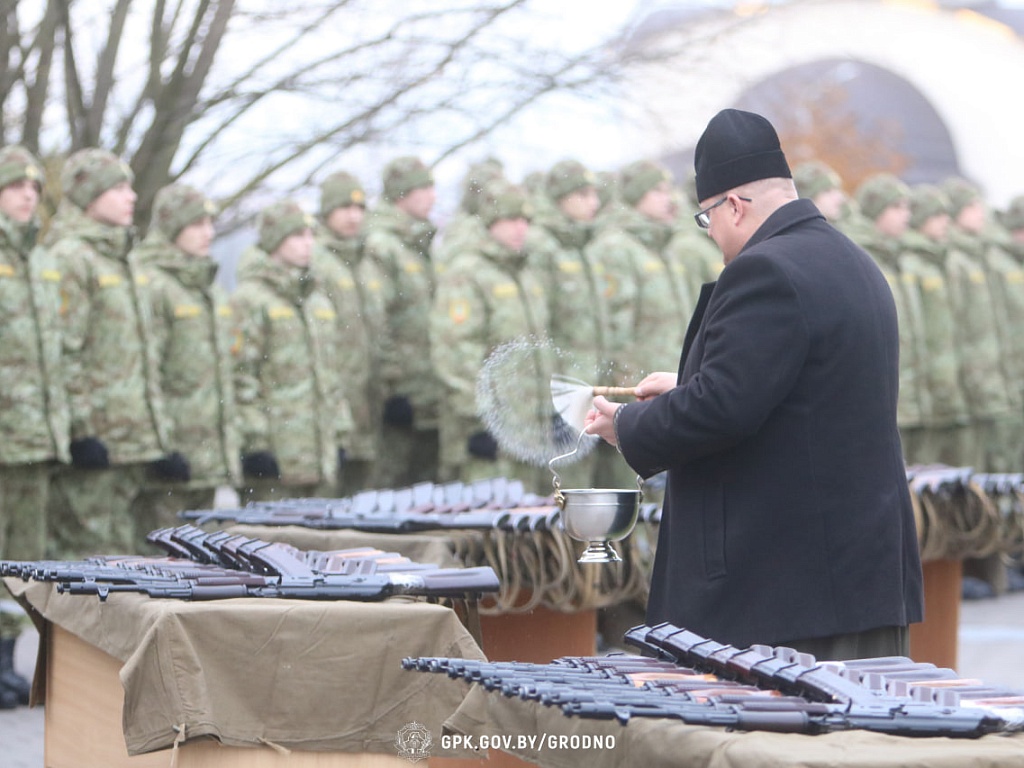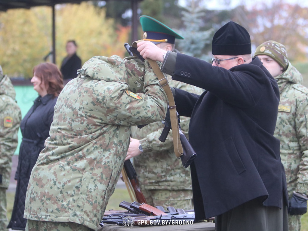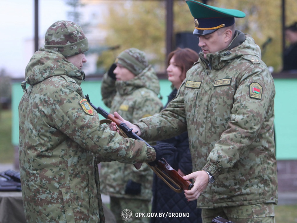 В Гродненской пограничной группе 6 ноября был проведен ритуал встречи с Боевым Знаменем части и вручения оружия личному составу нового пополнения.