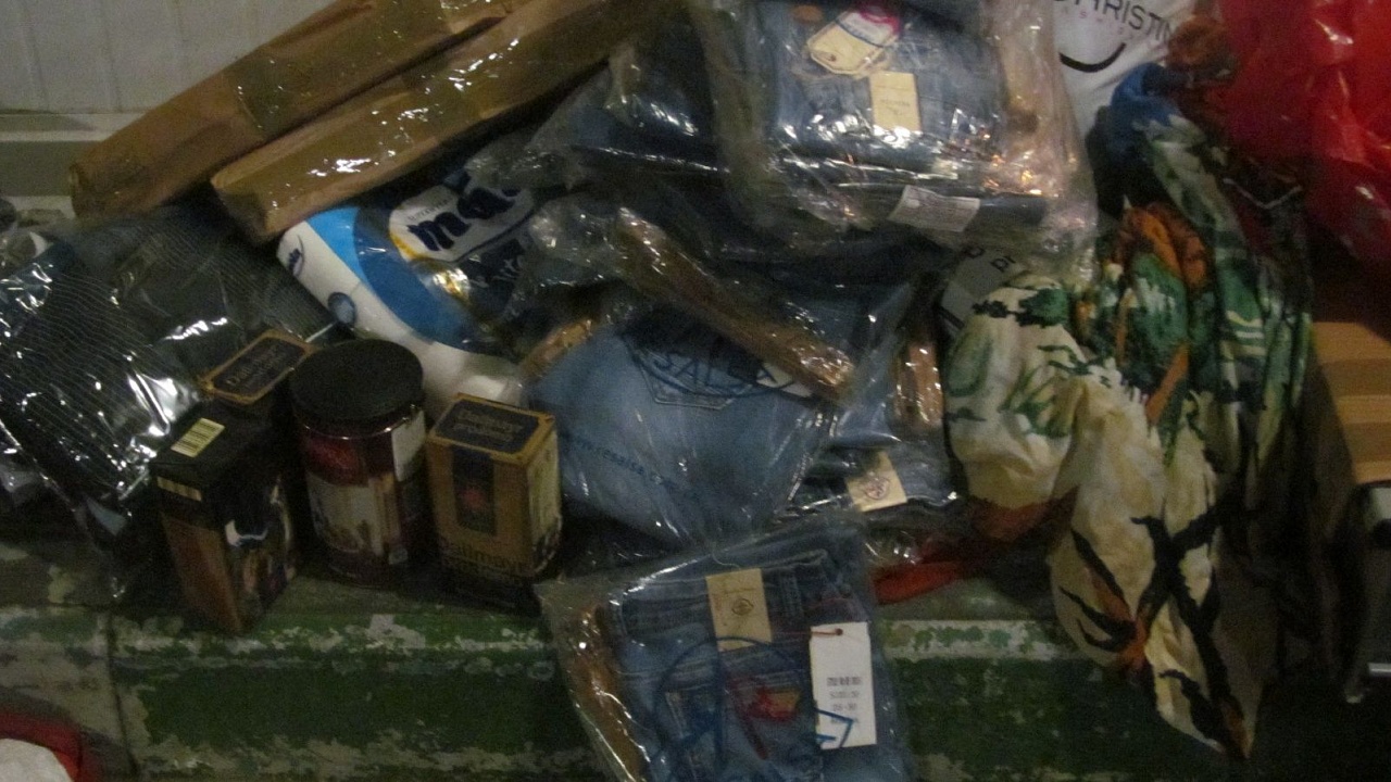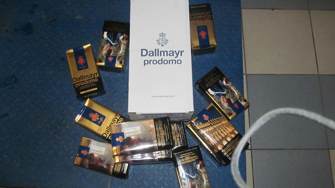 Не заявленные в перемещении через госграницу женские джинсы фирмы «Resalsa» 40 пар, кофе марок «Lavazza Espresso» и «Dallmaer Prodomo» 64 пачки, носки мужские фирмы «Softsail» 36 пар, мужское нижнее белье фирмы «Miego» 42 шт., шкаф гаражный для инструментов в разборном виде, 2 водяные насоса (помпа), автоматические электрические выключатели фирмы «АВВ» 95 штук были уложены в салоне под передними и задним сидениями, а также в чехле под запасным колесом автомобиля.
