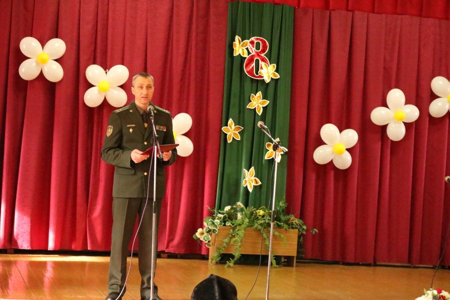 С теплыми словами к присутствующим женщинам обратился командир воинской части полковник Давидюк А.Б. Александр Борисович от имени руководителя пограничного ведомства и себя лично отметил высокий вклад военнослужащих женщин и работниц воинской части в результаты оперативно-служебной деятельности пограничного отряда, пожелав при этом исполнение всех заветных желаний. От всей души поздравил прекрасную половину присутствующих, и настоятель войскового храма отец Сергей.