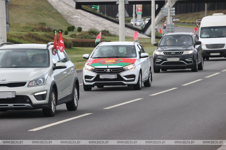 Автопробег "За единую Беларусь" во время празднования Дня народного единства в Минске собрал более 250 участников и свыше 70 автомобилей, передает корреспондент БЕЛТА.