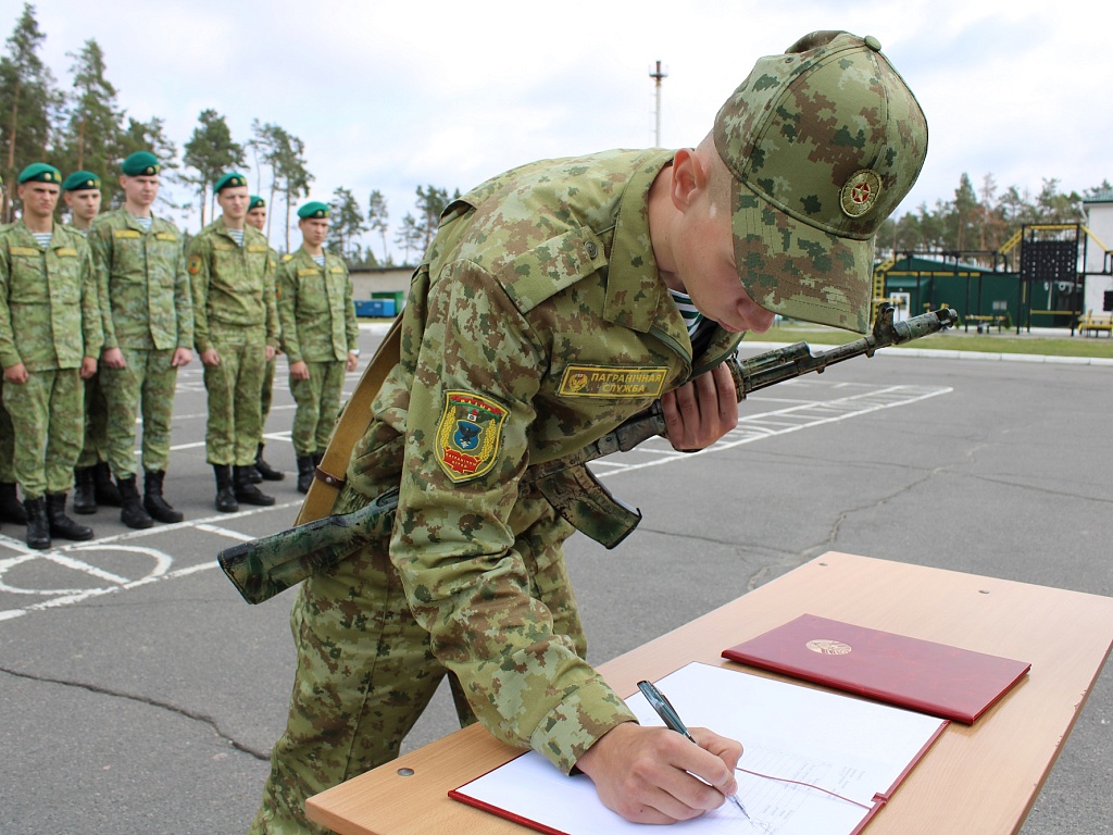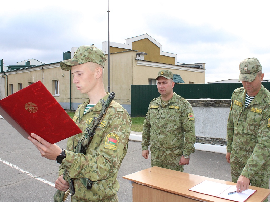 Сегодня в Мозырском пограничном отряде клятву на верность белорусскому народу принесли пограничники маневренной группы. Это военнослужащие контрактной службы, которые решили связать свою жизнь с границей.