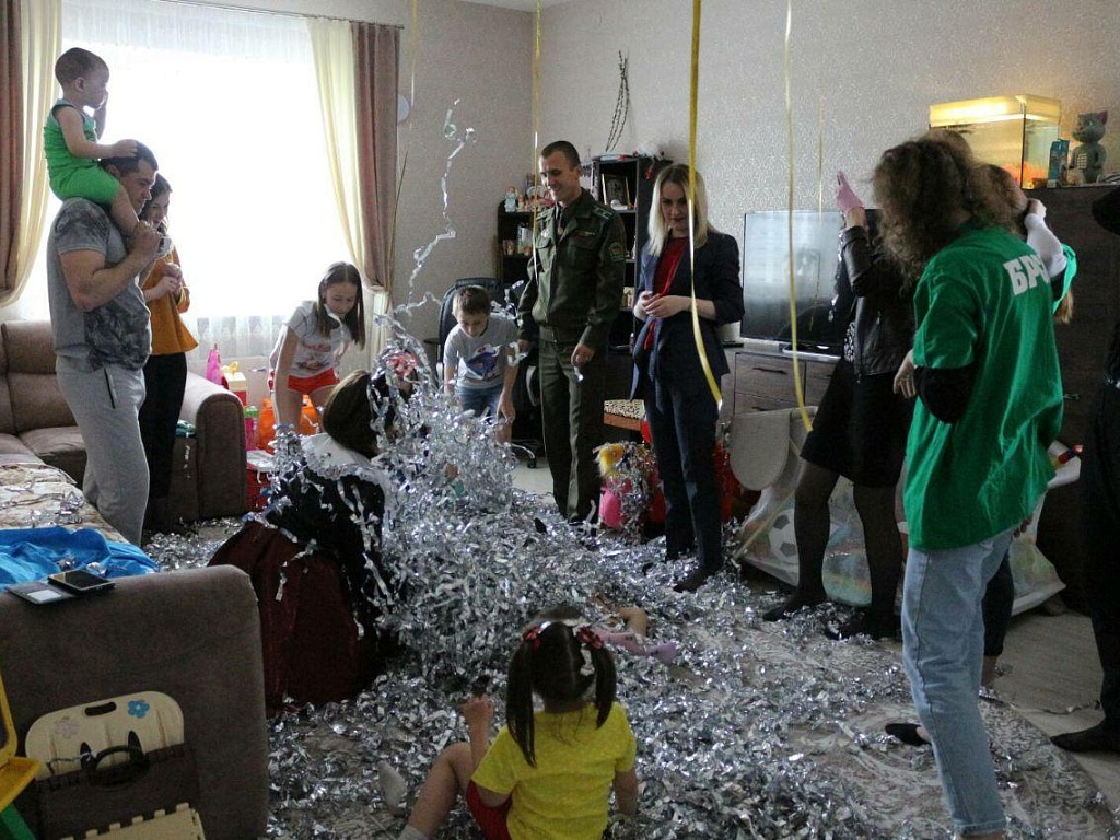 В рамках республиканской акции "День защиты детей с БРСМ" активисты и волонтеры Столинского РК ОО "БРСМ" совместно с военнослужащими опк «Верхний Теребежов» и представителями отдела культуры посетили дом семейного типа в городе Столине , семью Анатолия и Ирины Андрейковец.
