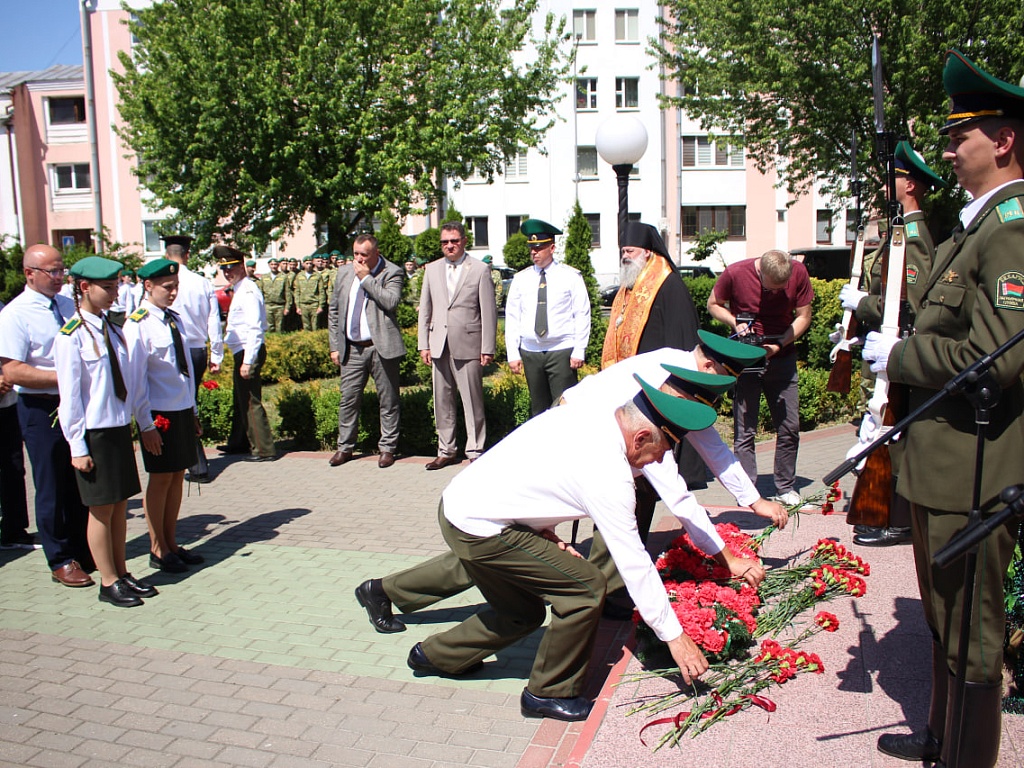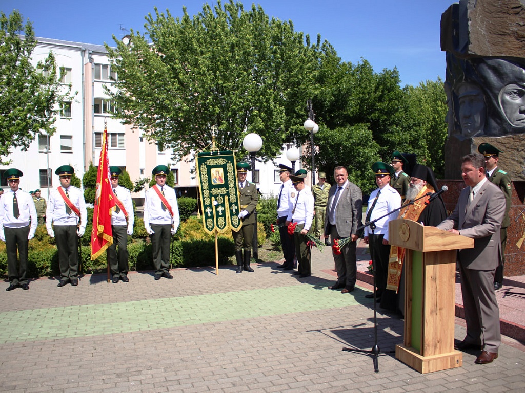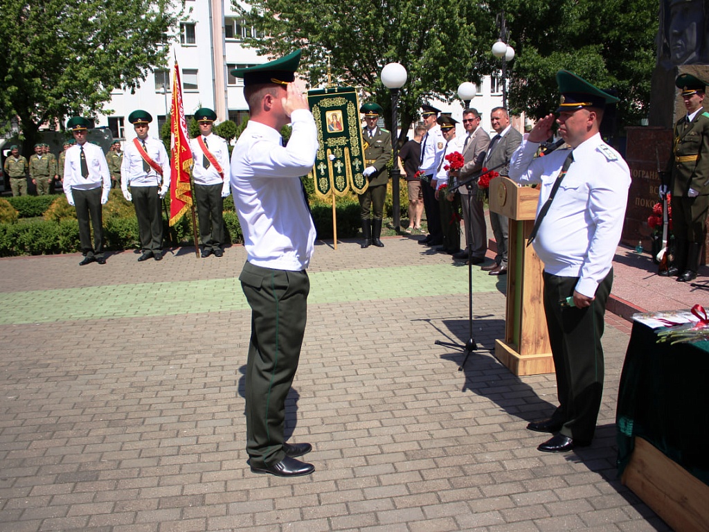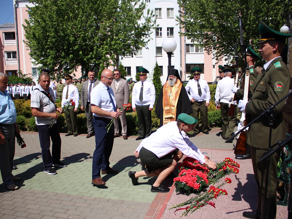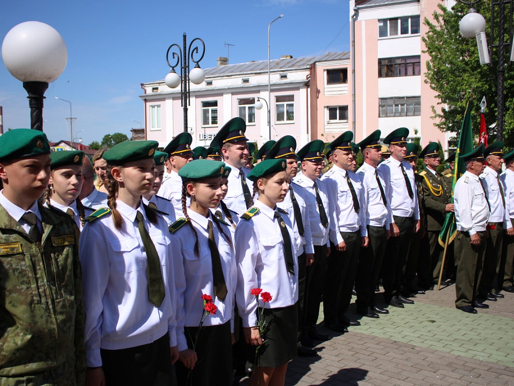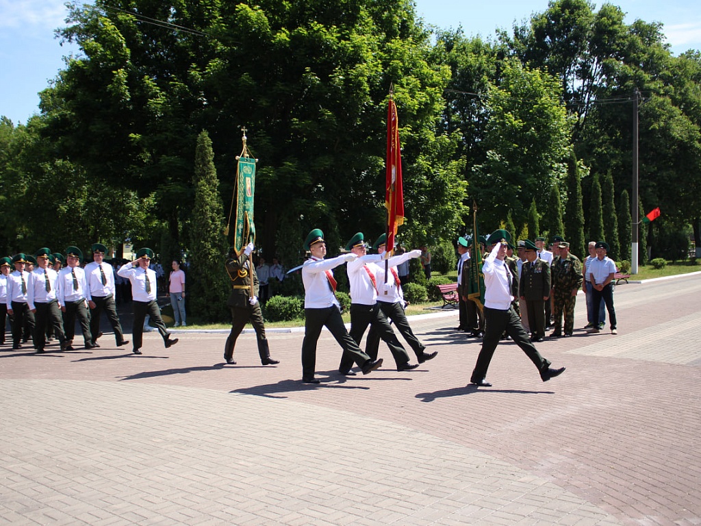 Сегодня, 28 мая, у мемориального знака «Пограничникам всех поколений» состоялось торжественное построение военнослужащих, в ходе которого командир Пинского погранотряда полковник Дмитрий Винников довел до всех присутствующих поздравление от Президента Республики Беларусь. Также поздравительные слова прозвучали и от гостей праздника.