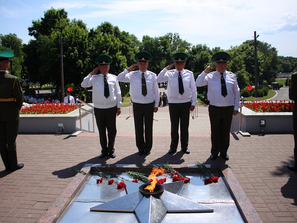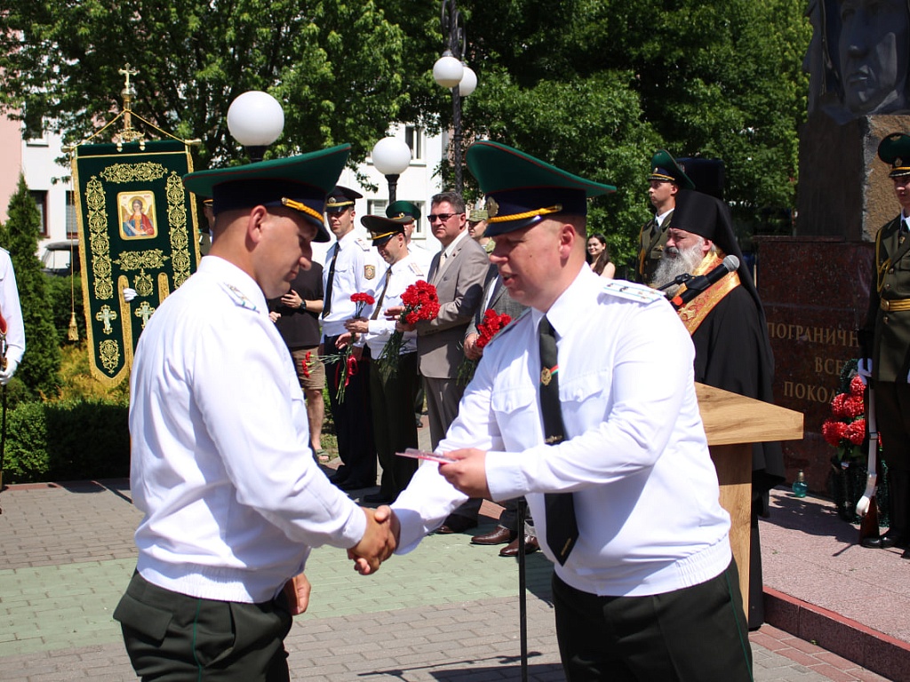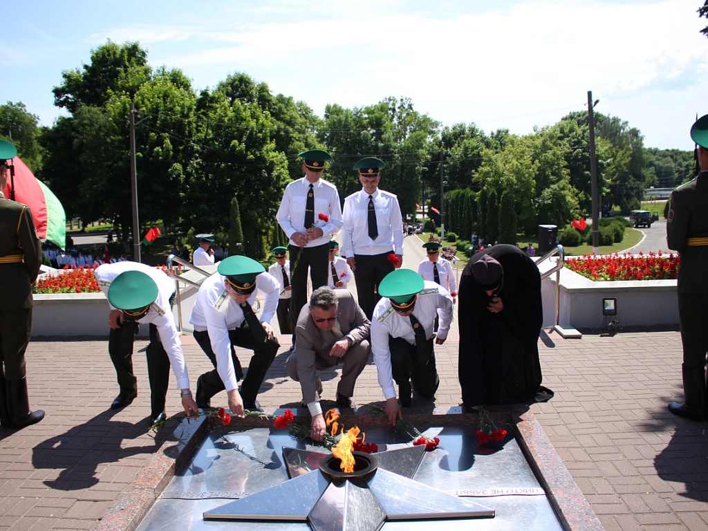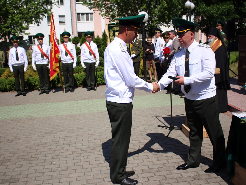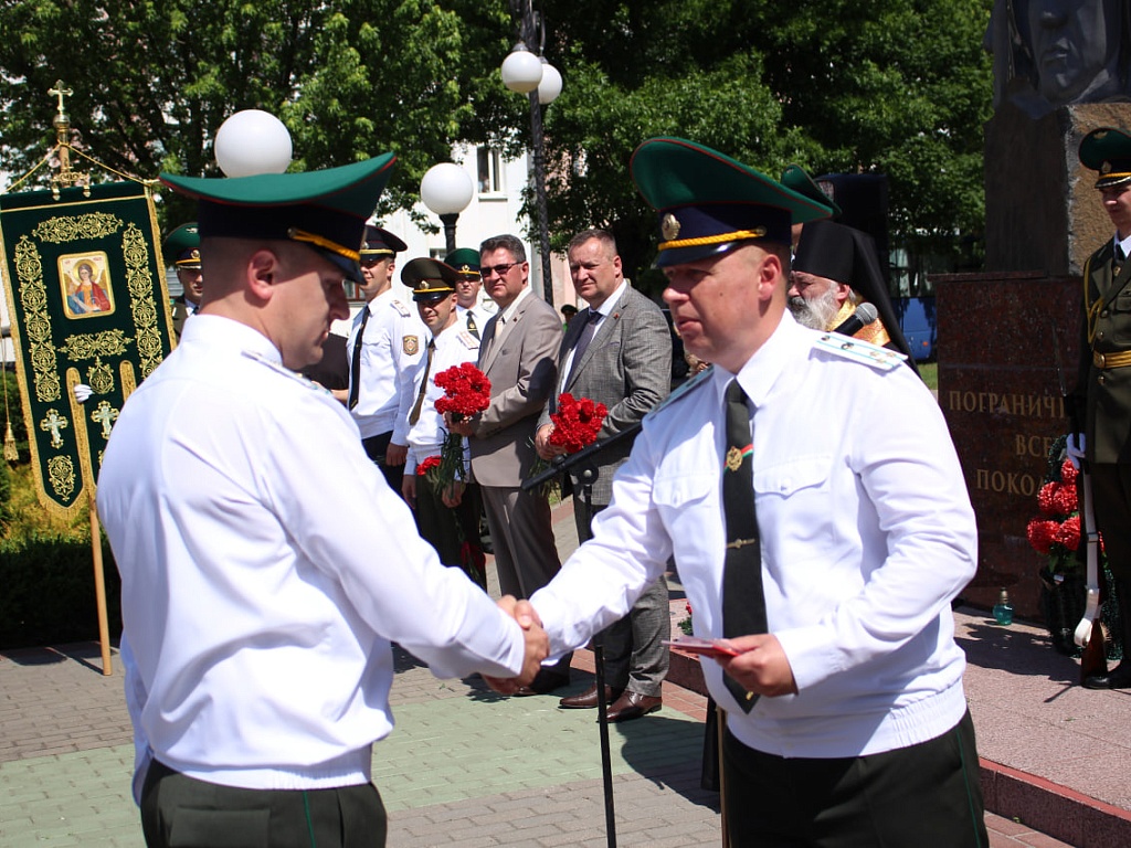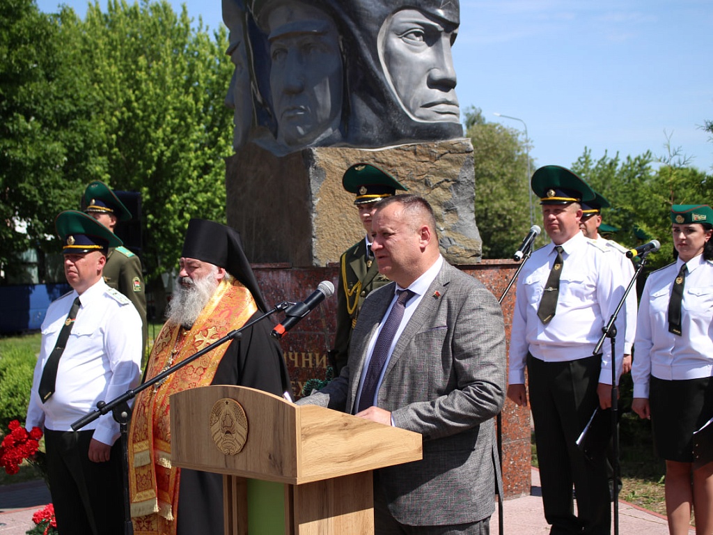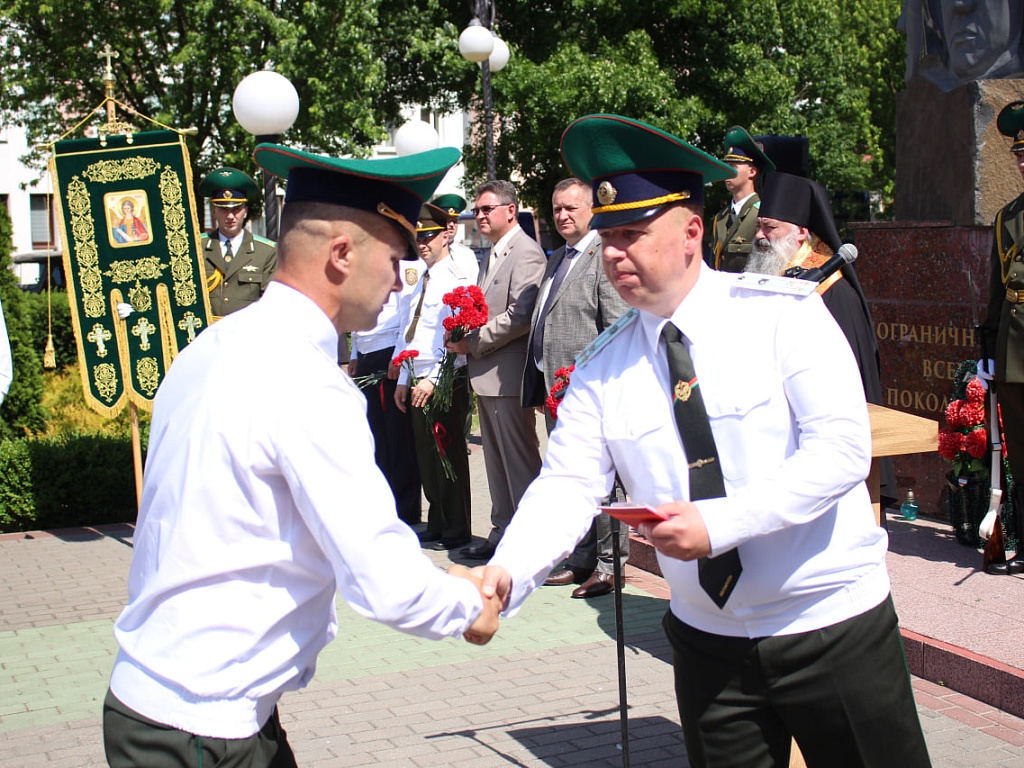Сегодня, 28 мая, у мемориального знака «Пограничникам всех поколений» состоялось торжественное построение военнослужащих, в ходе которого командир Пинского погранотряда полковник Дмитрий Винников довел до всех присутствующих поздравление от Президента Республики Беларусь. Также поздравительные слова прозвучали и от гостей праздника.