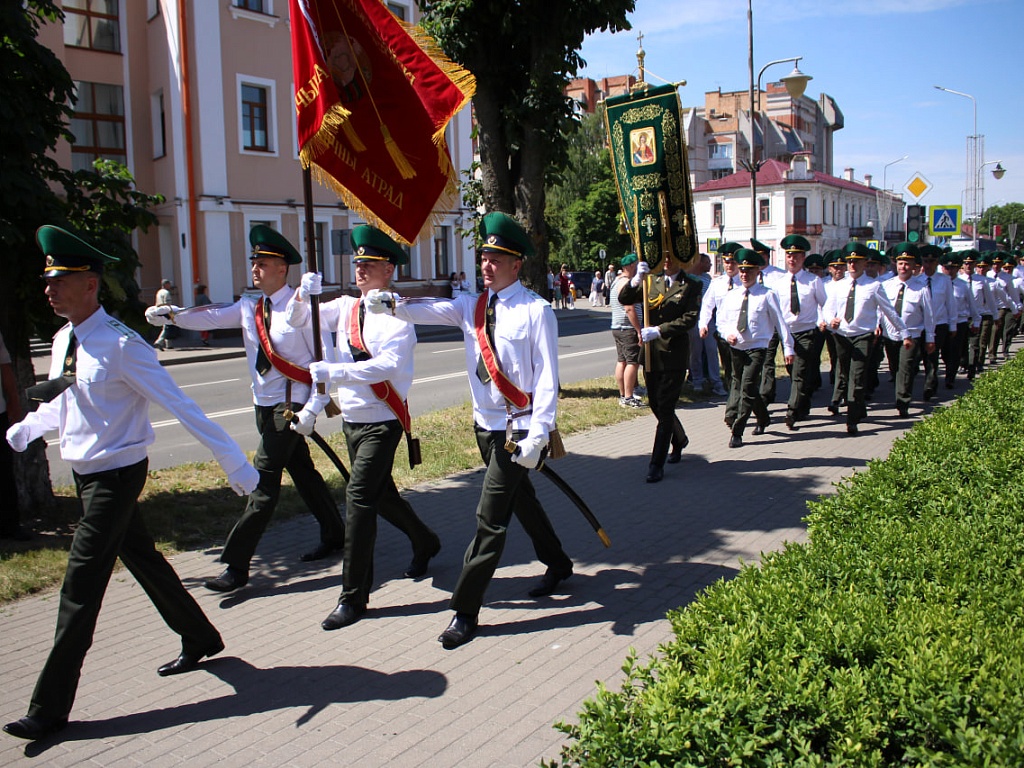 Далее пограничники и ветераны в сопровождении военного оркестра торжественным маршем прошли по исторической части города к мемориальному комплексу освободителям г. Пинска.