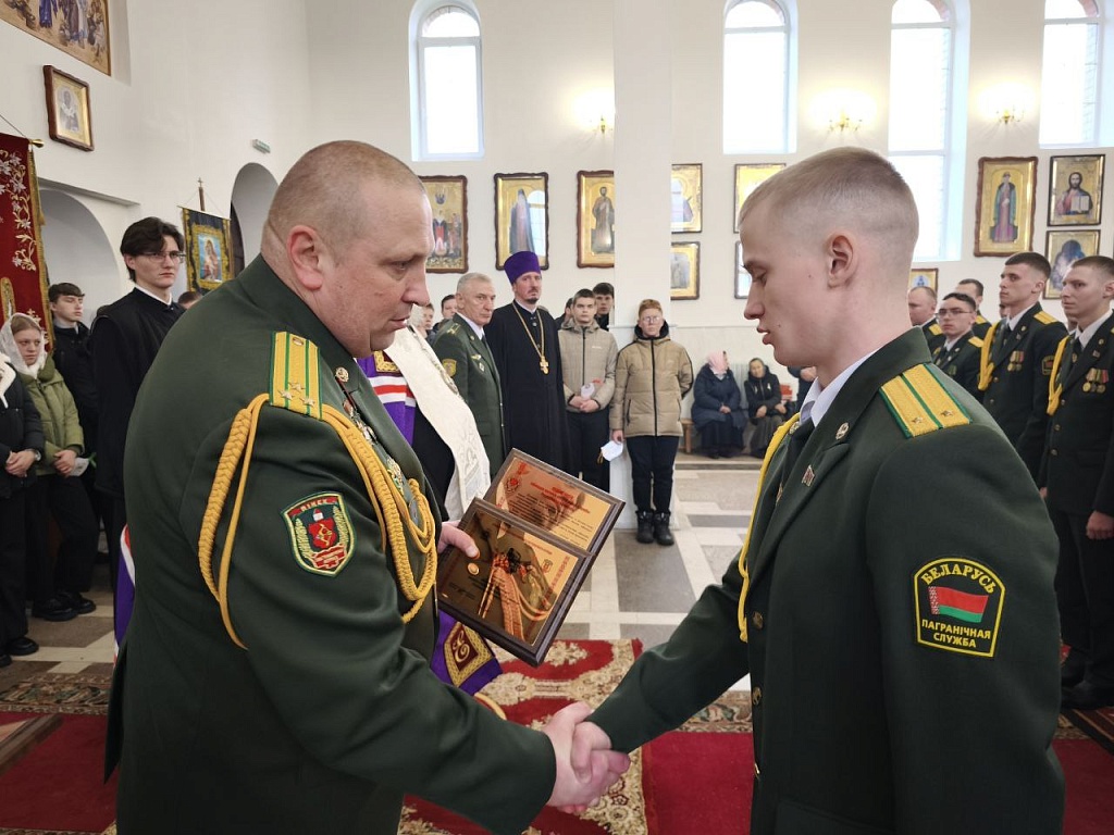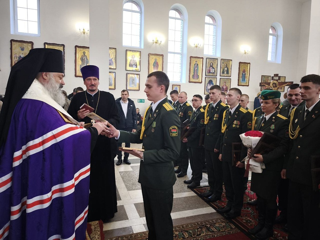 В честь храмового праздника Архистратига Михаила 21 ноября в храме агрогородка Плещицы состоялось принятие выпускников Института пограничной службы в офицерское собрание Пинского пограничного отряда.
