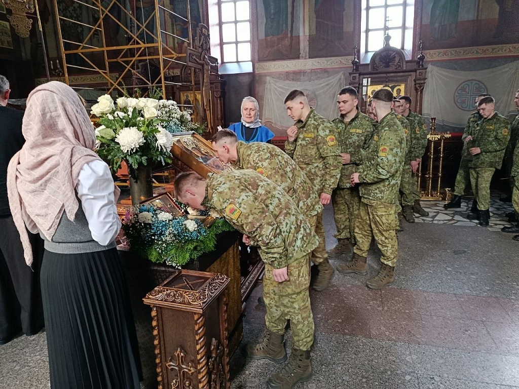 Протоиерей Василий Грень провёл для военнослужащих экскурсию, рассказав об истории святынь, их значении для православных христиан и о самом соборе.