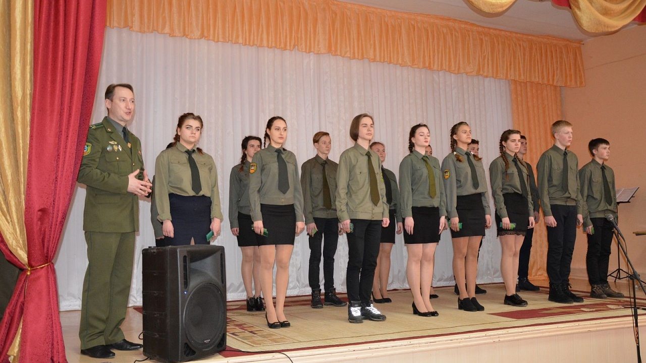 Куратор клуба юных друзей пограничников Андрей Долгих, ветеран пограничных войск, участник боевых действий в Афганистане и полковник Анатолий Михальчик, заместитель начальника Полоцкого пограничного отряда по идеологической работе и кадровому обеспечению вручили ребятам удостоверения юных друзей пограничников и первые погоны. Билеты членов общественного объединения «Белорусский республиканский союз молодежи» ребята получили из рук военнослужащего Полоцкого пограничного отряда майора Максима Пегова.