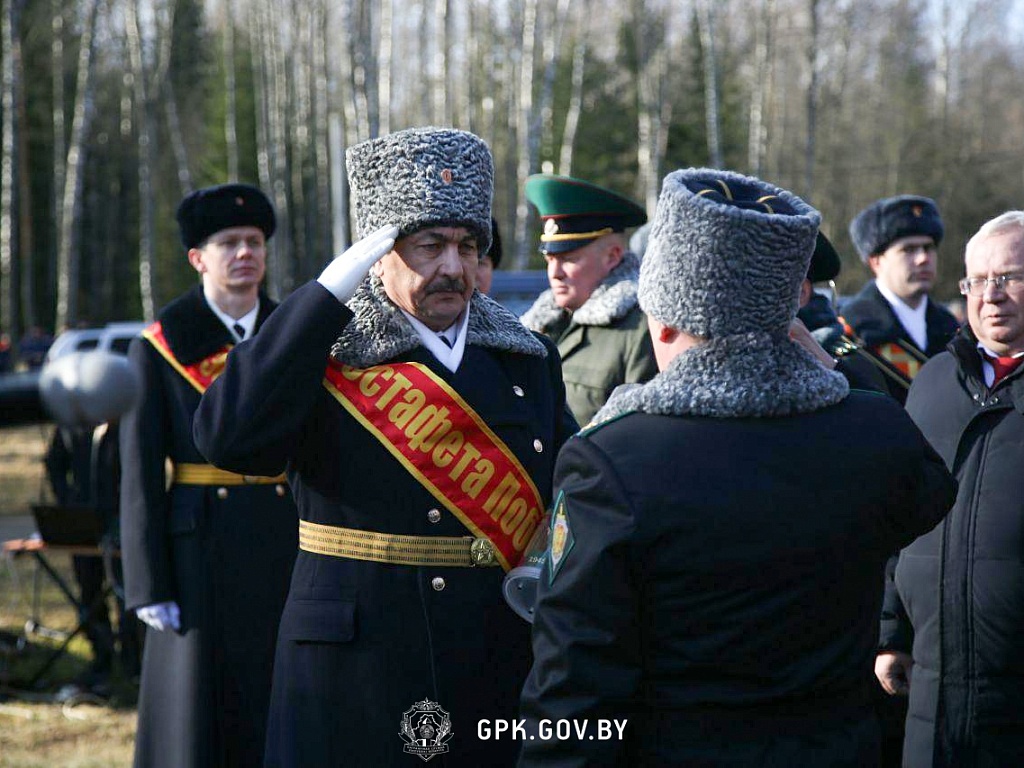 В передаче Эстафеты приняли участие заместитель Председателя Госпогранкомитета генерал-майор Игорь Печень, председатель Витебского областного совета депутатов Владимир Терентьев, первый заместитель начальника Пограничного управления ФСБ России по Псковской области полковник Станислав Акатов, полоцкие и псковские пограничники, члены ветеранских и молодежных организаций, представители духовенства.