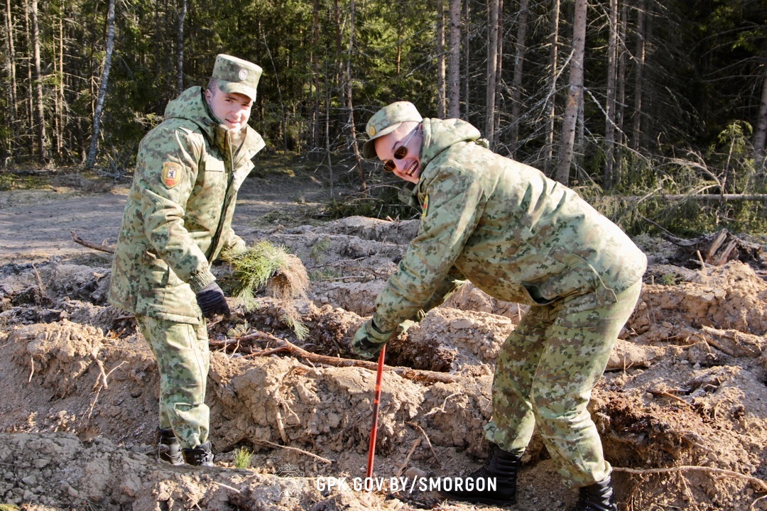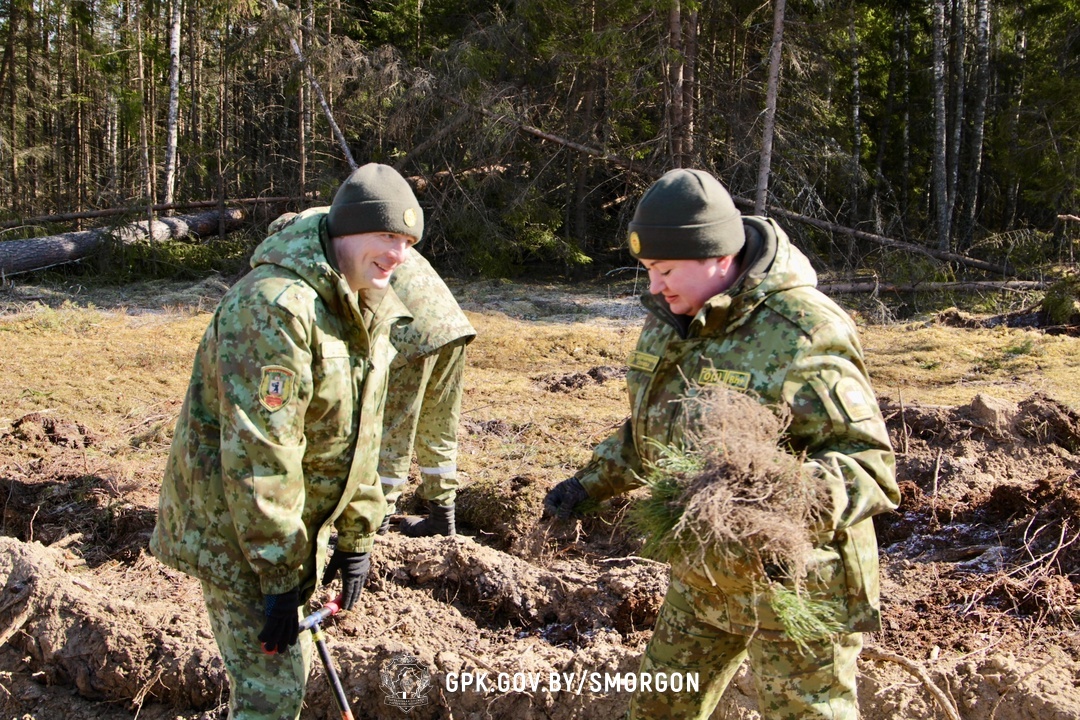 Сегодня, 9 апреля, Сморгонскими пограничниками на территории Сольского лесничества было высажено около 5000 саженцев сосны.