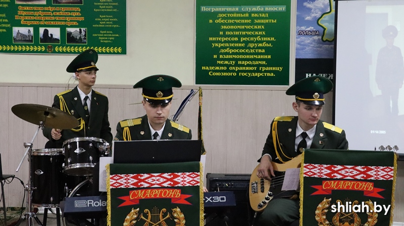 На протяжении концерта звучали песни в исполнении солистов военного оркестра Сморгонской пограничной группы. Также свой музыкальный подарок для части сделал заслуженный любительский коллектив Республики Беларусь народная вокальная группа «Единство» Пинского пограничного отряда.