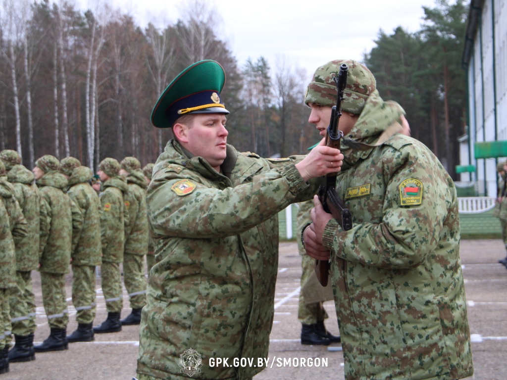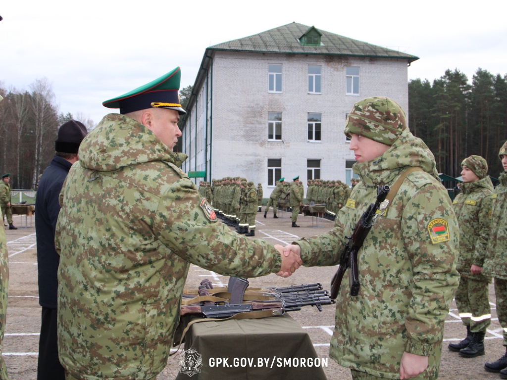 Сегодня, 6 ноября, на строевом плацу воинской части прошел значимый ритуал вручения оружия новобранцам. Этот день стал важной составляющей в жизни молодых военнослужащих. Слова поздравления и напутствия прозвучали от командования Сморгонской пограничной группы, духовенства и ветеранов органов пограничной службы.