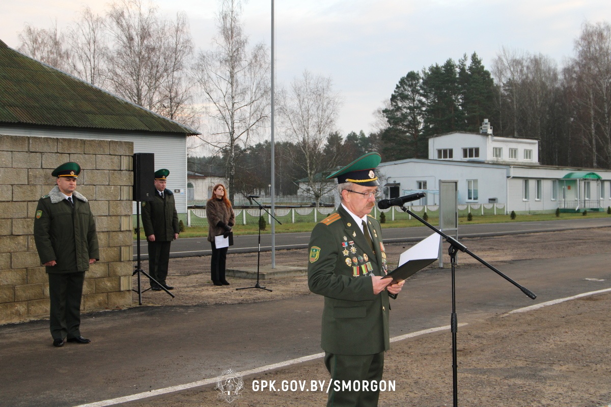 Сегодня торжественное мероприятие прошло на территории Сморгонской пограничной группы, где состоялся митинг, собравший военнослужащих и командование группы.