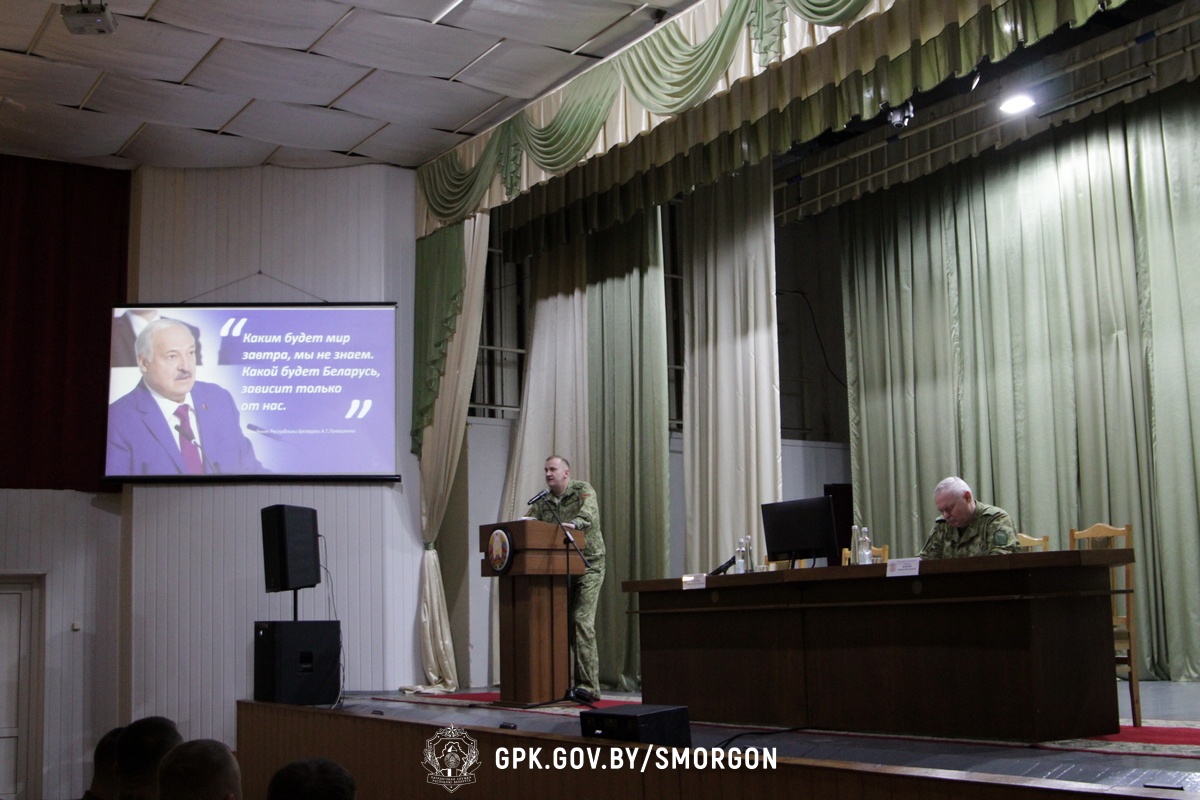 Сегодня, 19 января, в клубе воинской части состоялась встреча коллектива Сморгонской пограничной группы с делегатом ВНС – заместителем Председателя Госпогранкомитета полковником Максимом Бутранцом. В ходе мероприятия участники обсудили основные тезисы Послания Президента Александра Лукашенко белорусскому народу и Национальному собранию Республики Беларусь.